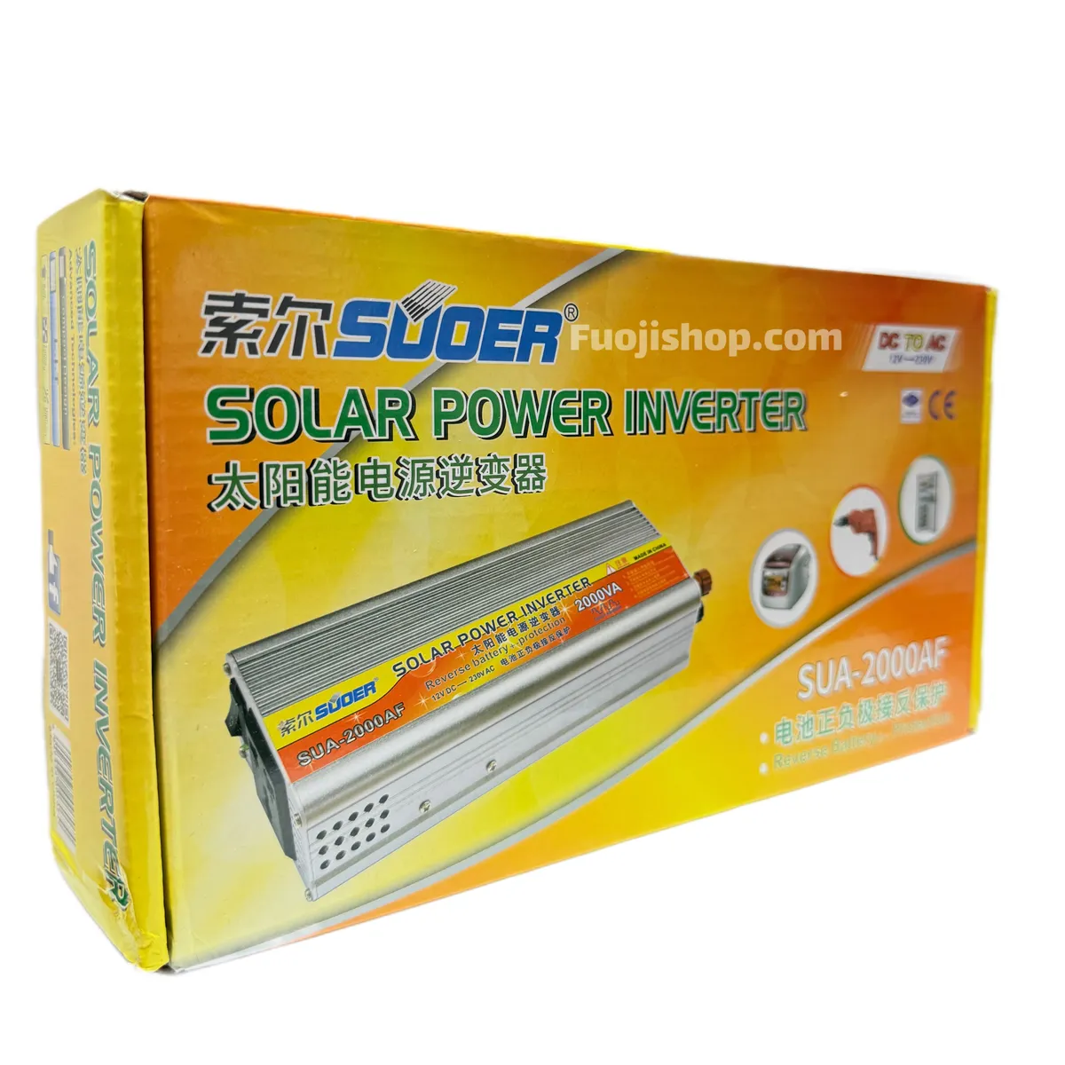 اینورتر SUA-2000AF یک دستگاه قدرتمند با توان 2000 وات (توان اسمی 700 وات در مشخصات دفترچه) است که برق 12 ولت DC را به برق 220 ولت AC با فرکانس 50 هرتز تبدیل میکند.