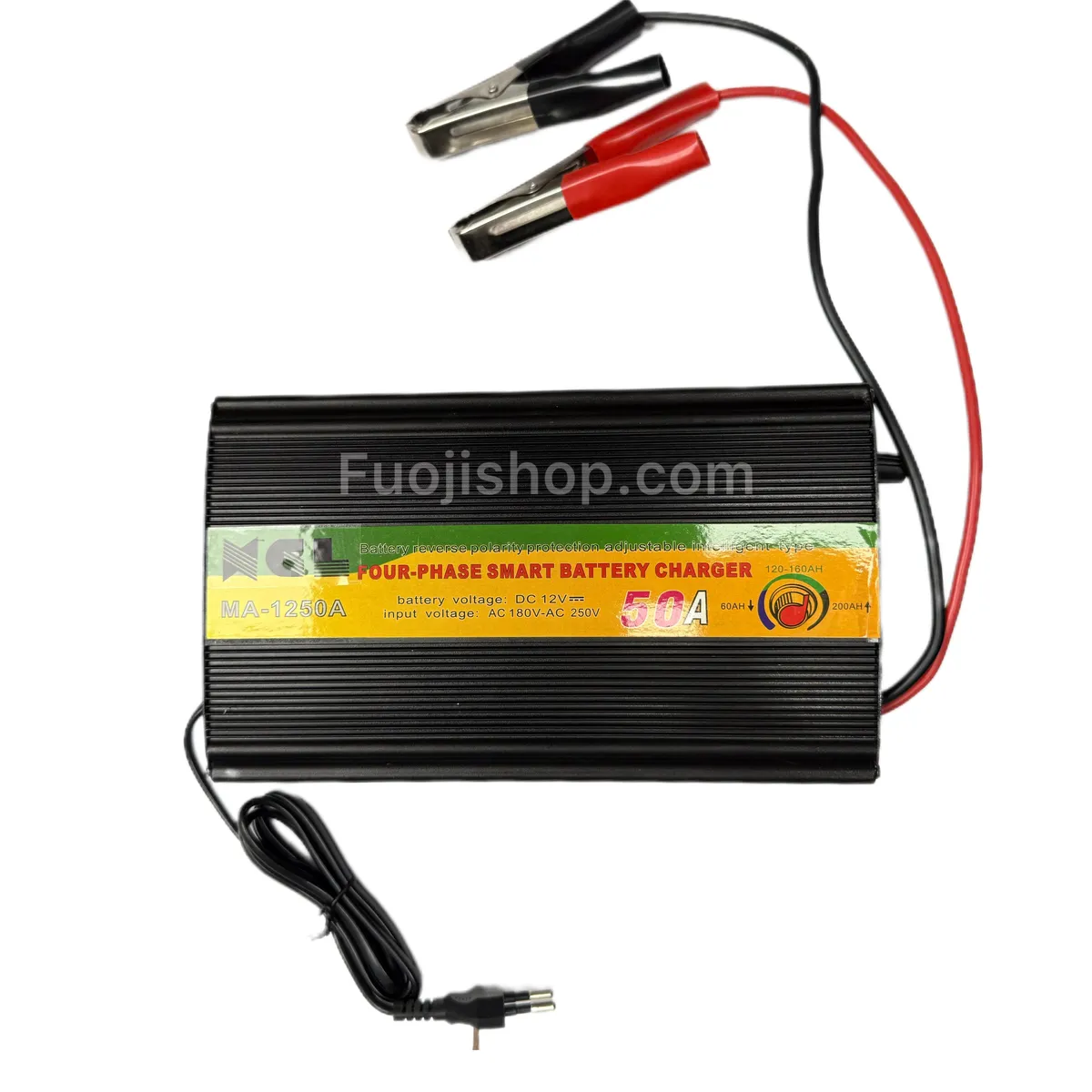 شارژر باتری هوشمند MA-1250A یکی از قدرتمندترین و حرفهایترین شارژرهای موجود برای شارژ انواع باتریهای 12 ولت است. این دستگاه با توان 50 آمپر واقعی و طراحی چهار مرحلهای (Four-Phase Smart Battery Charger) بهصورت خودکار روند شارژ را کنترل کرده و از شارژ بیشازحد یا آسیب به باتری جلوگیری میکند.