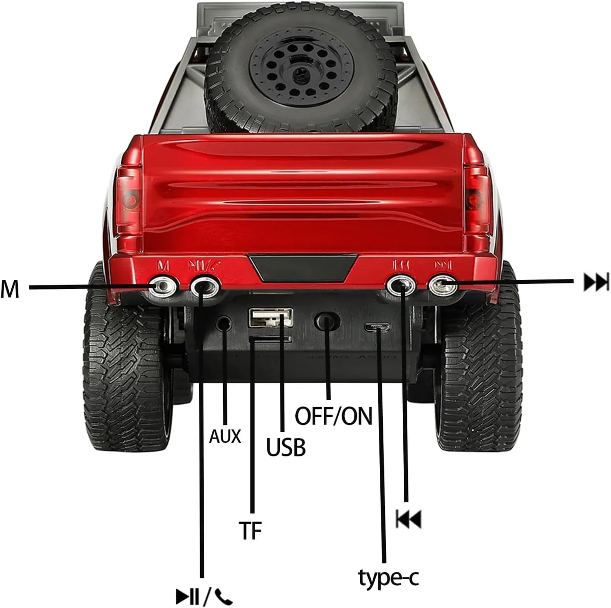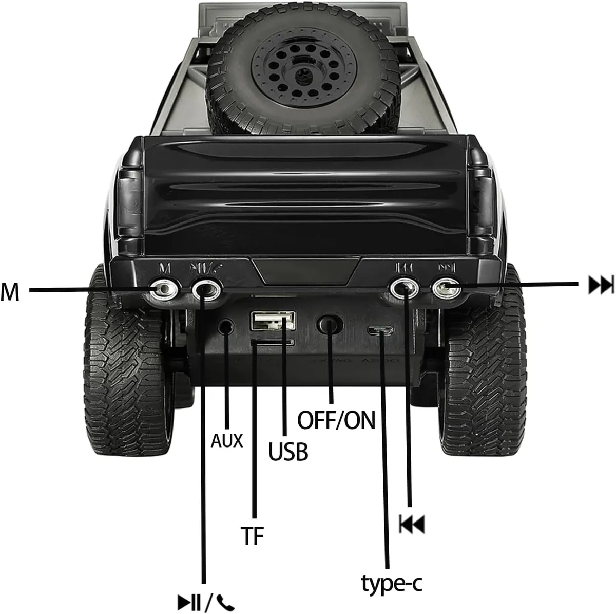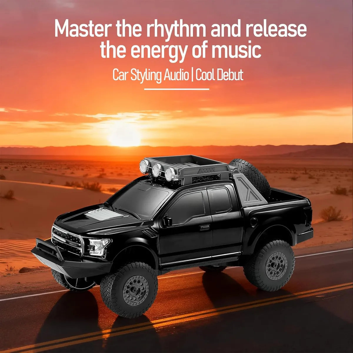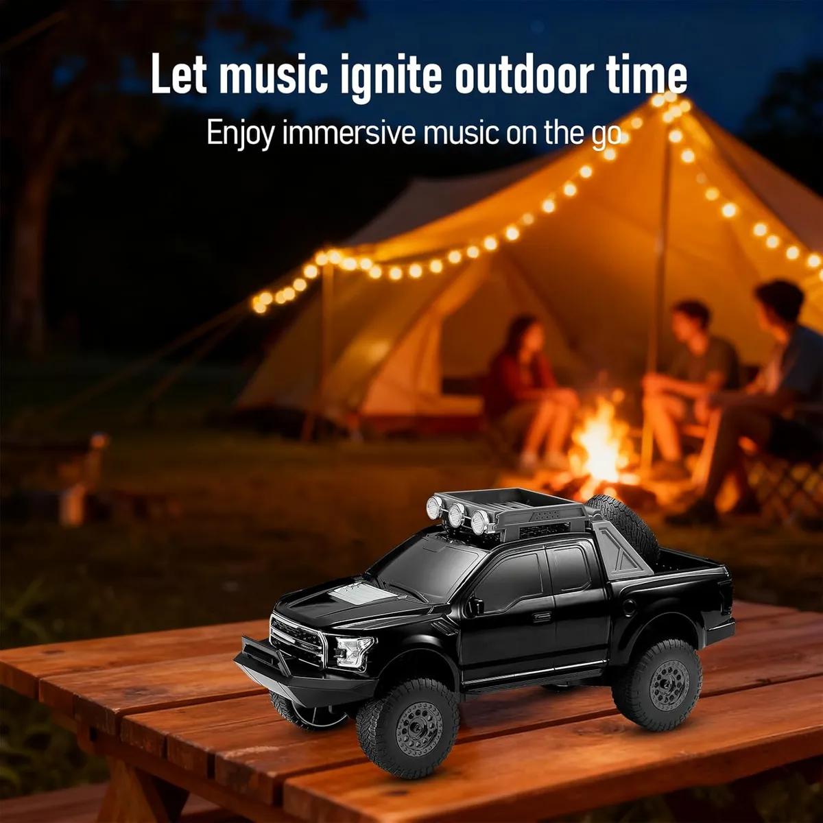 این اسپیکر با الهام از خودروهای پیکاپ آفرود طراحی شده و تمام جزئیات ظاهری مثل چراغها، لاستیکها، سپر جلو، سقف و خطوط بدنه با دقت بالا بازسازی شده است. نتیجه، یک اسپیکر فانتزی است که نه تنها برای پخش موسیقی، بلکه به عنوان یک دکور زیبا روی میز کار یا قفسه اتاق نیز کاربرد دارد.