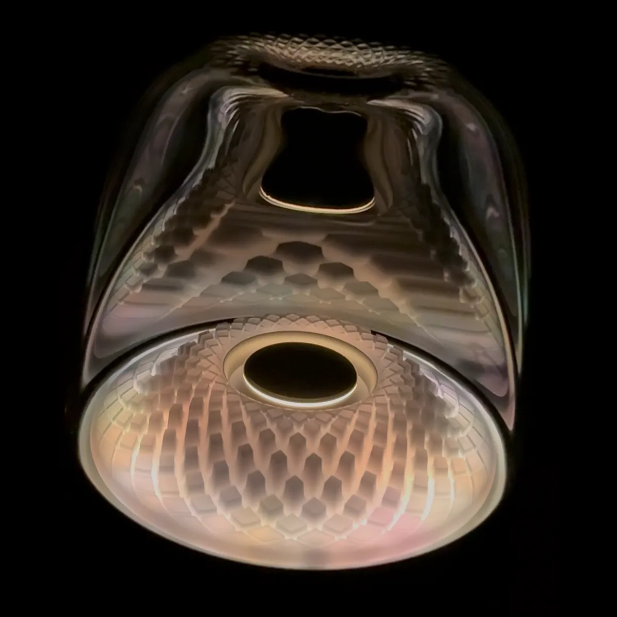 اولین چیزی که در نگاه اول توجه شما را جلب میکند، بدنه شفاف این اسپیکر است. این طراحی که امضای سری Aura محسوب میشود، نهتنها زیبایی بینظیری دارد، بلکه هنگام روشن شدن دستگاه و فعال شدن نورپردازی داخلی، جلوهای آرامشبخش و لوکس به محیط میبخشد.