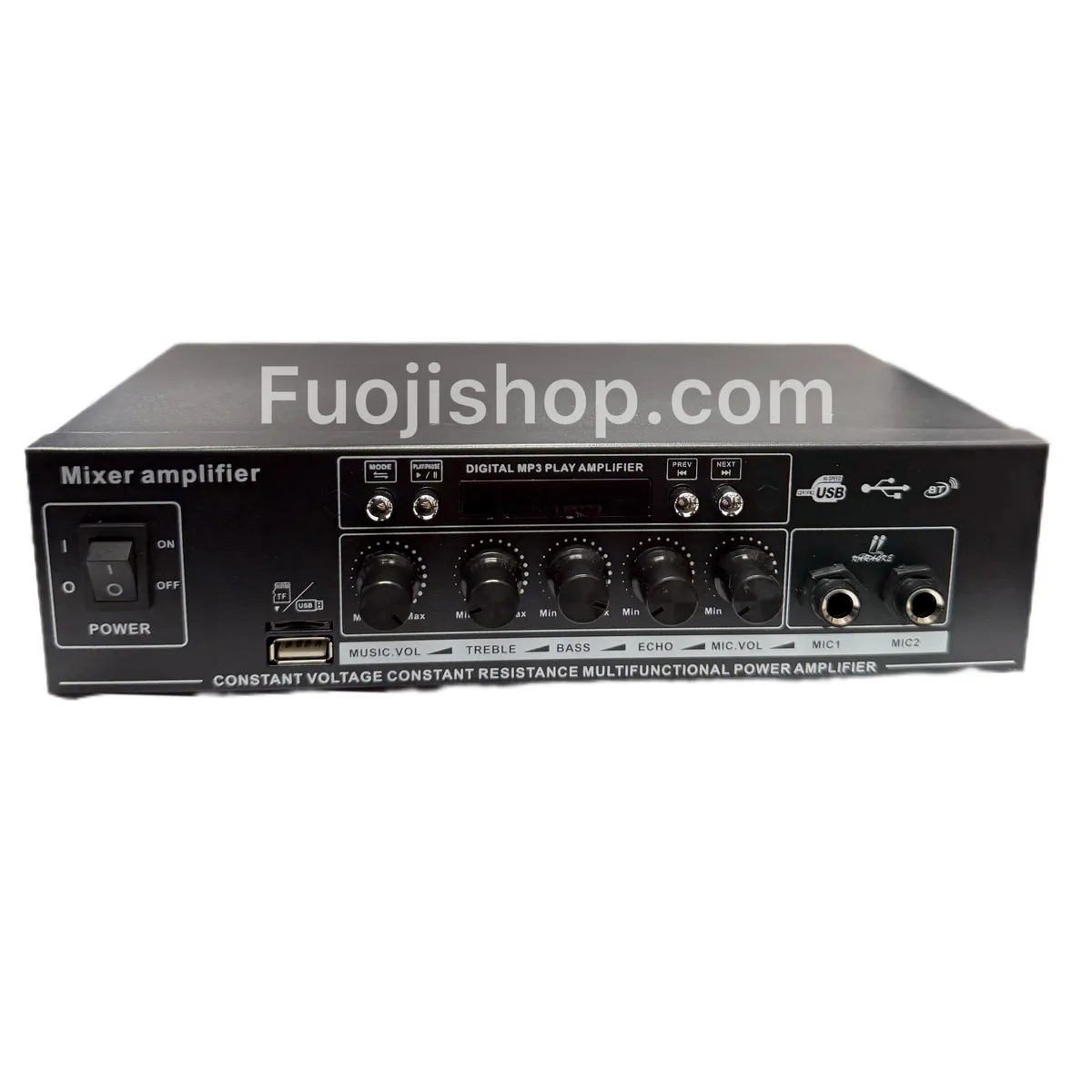 قابلیت پخش موسیقی از طریق بلوتوث، USB یا کارت حافظه، این امپلی فایر را به انتخاب ایدهآلی برای مهمانیها و دورهمیها تبدیل کرده است. میتوانید لیست پخش مورد علاقه خود را آماده کرده و به راحتی و بدون نیاز به اتصال فیزیکی، موسیقی پخش کنید.