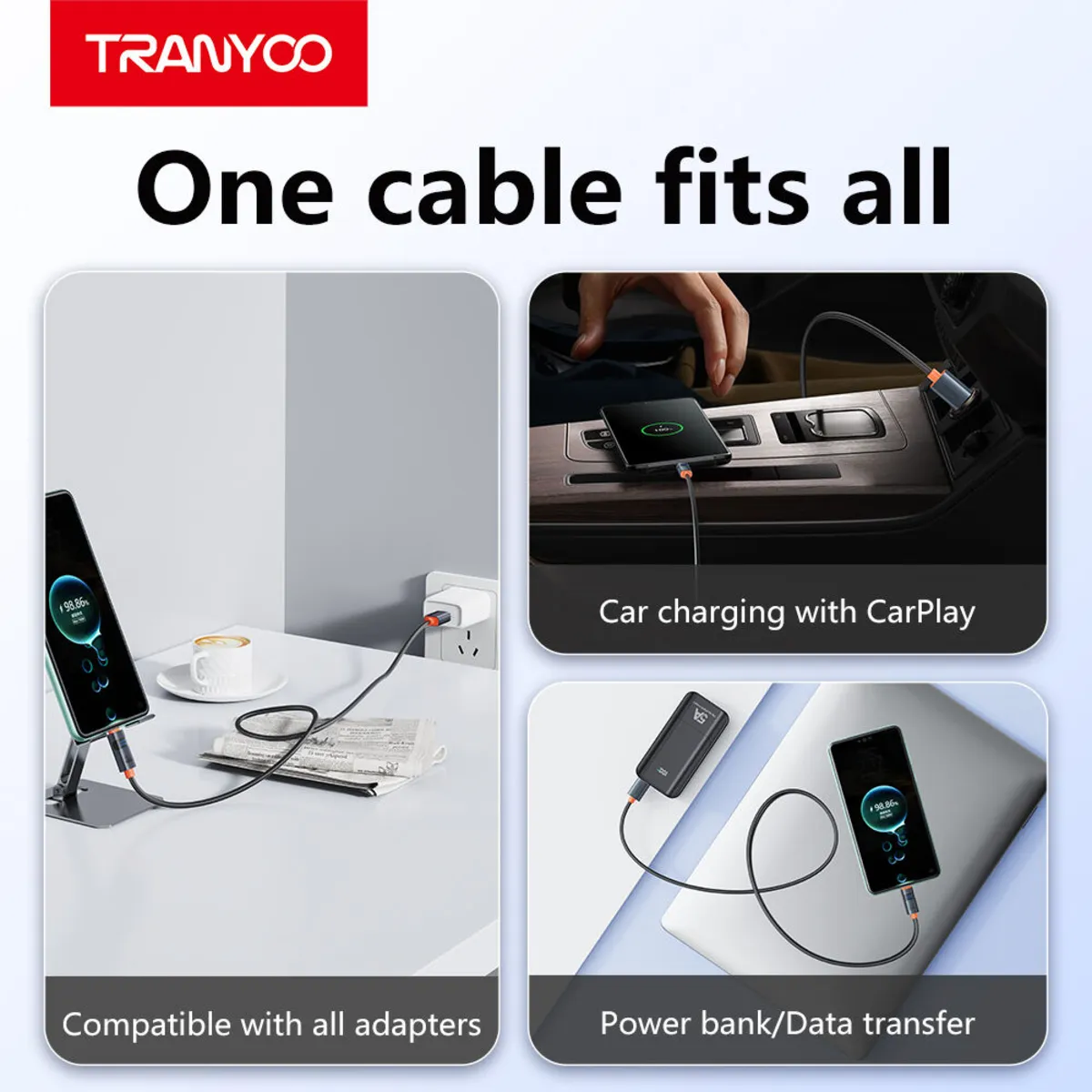یکی از بزرگترین مزایای کابل AC-6 TRANYOO، سازگاری بسیار گسترده آن است. این کابل با اکثر دستگاههای الکترونیکی محبوب بازار کار میکند.