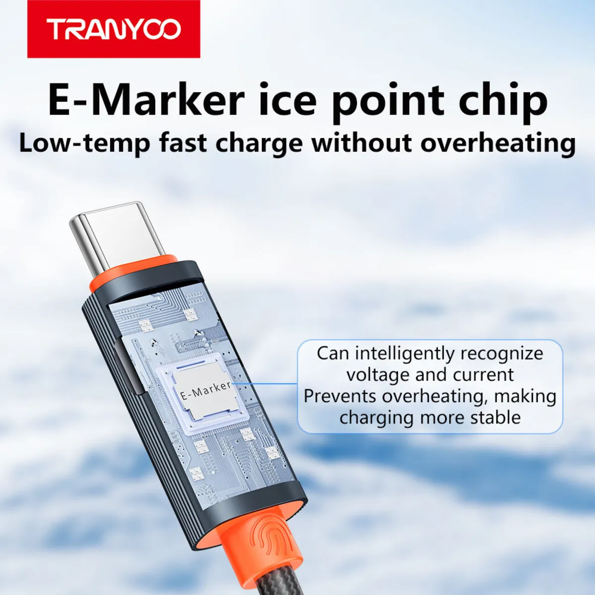 در قلب کابل AC-6 TRANYOO، یک تراشه E-Marker (نشانگذار الکترونیکی) پیشرفته قرار دارد. این تراشه، عامل اصلی هوشمندی و ایمنی این کابل است.