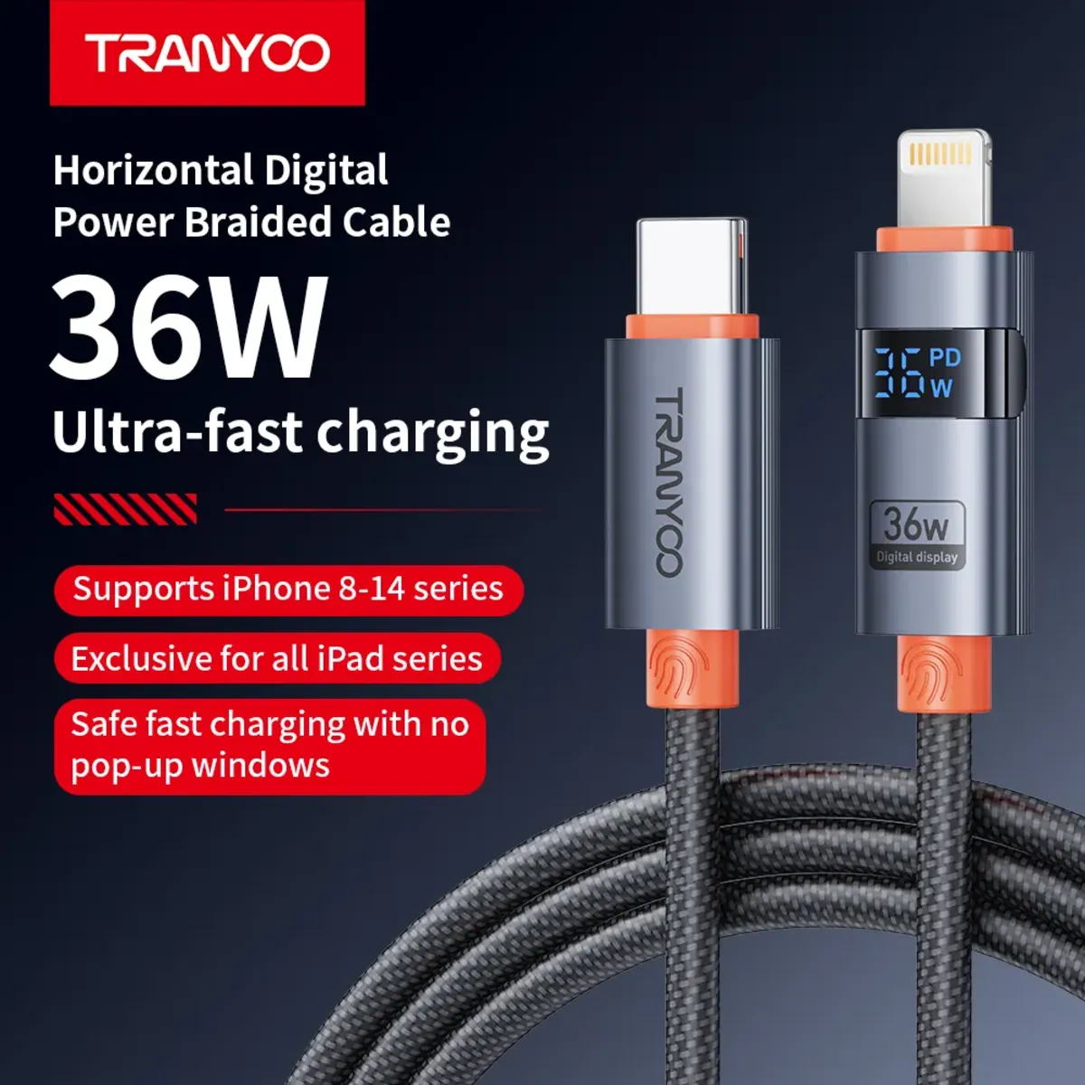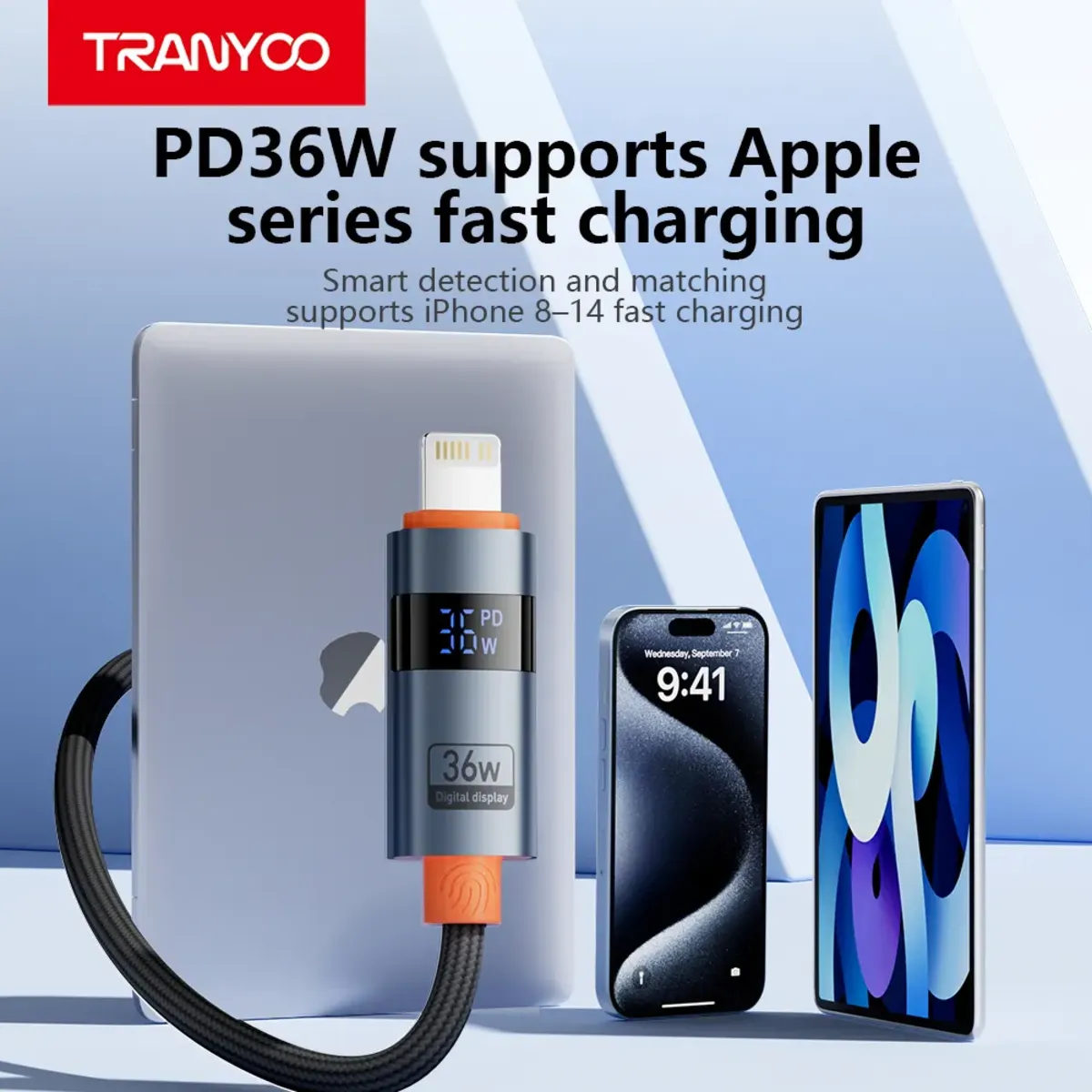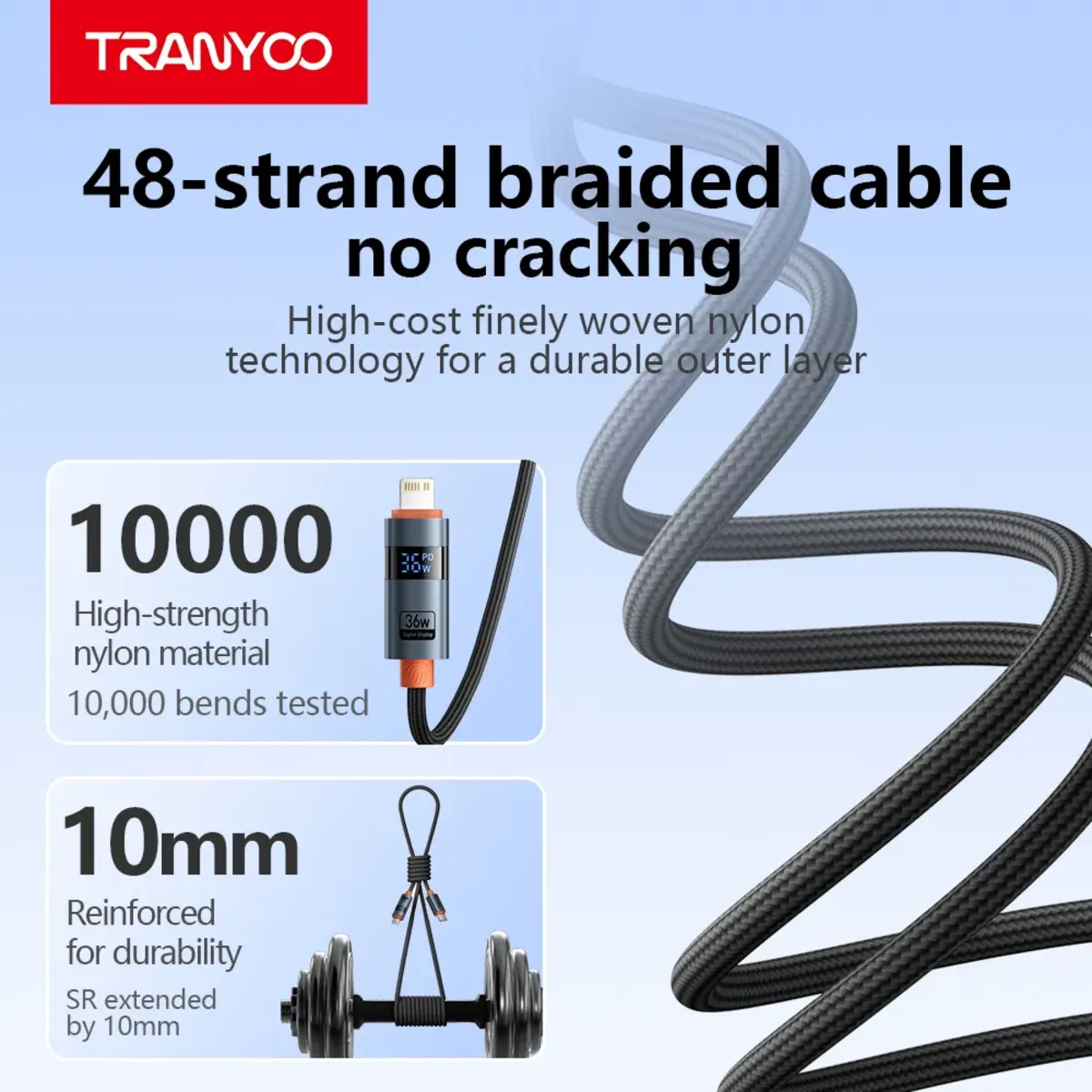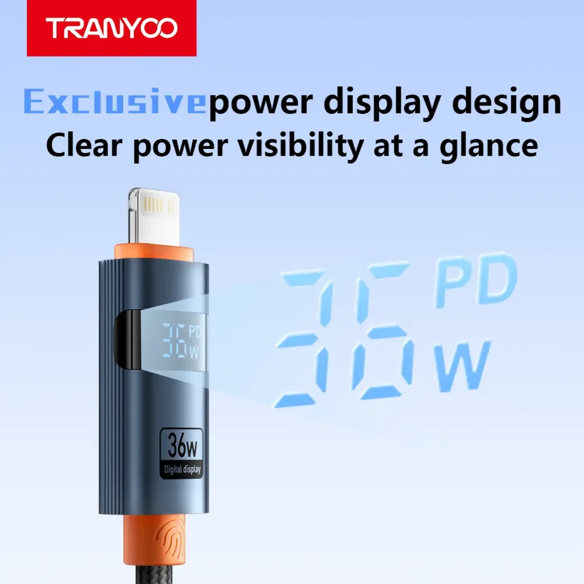 کابل تایپ سی به لایتنینگ ترانیو مدل CL-6 توان 36 وات + نمایشگر دیجیتال