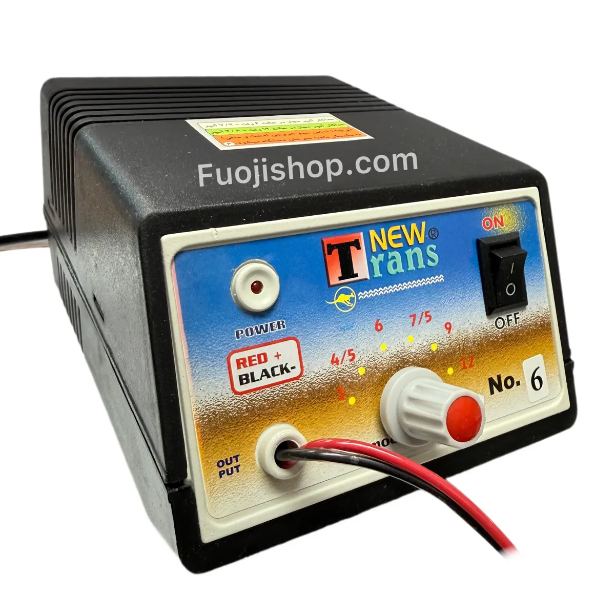 این شارژر یک شارژر ترانسی است که در آن بهوسیله یک دیمر چرخشی میتوانید میزان ولتاژ خروجی را در بازههای مختلف تنظیم کنید.