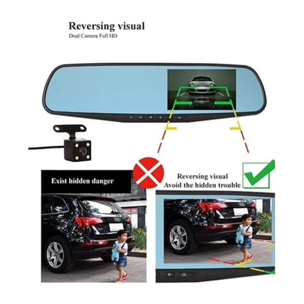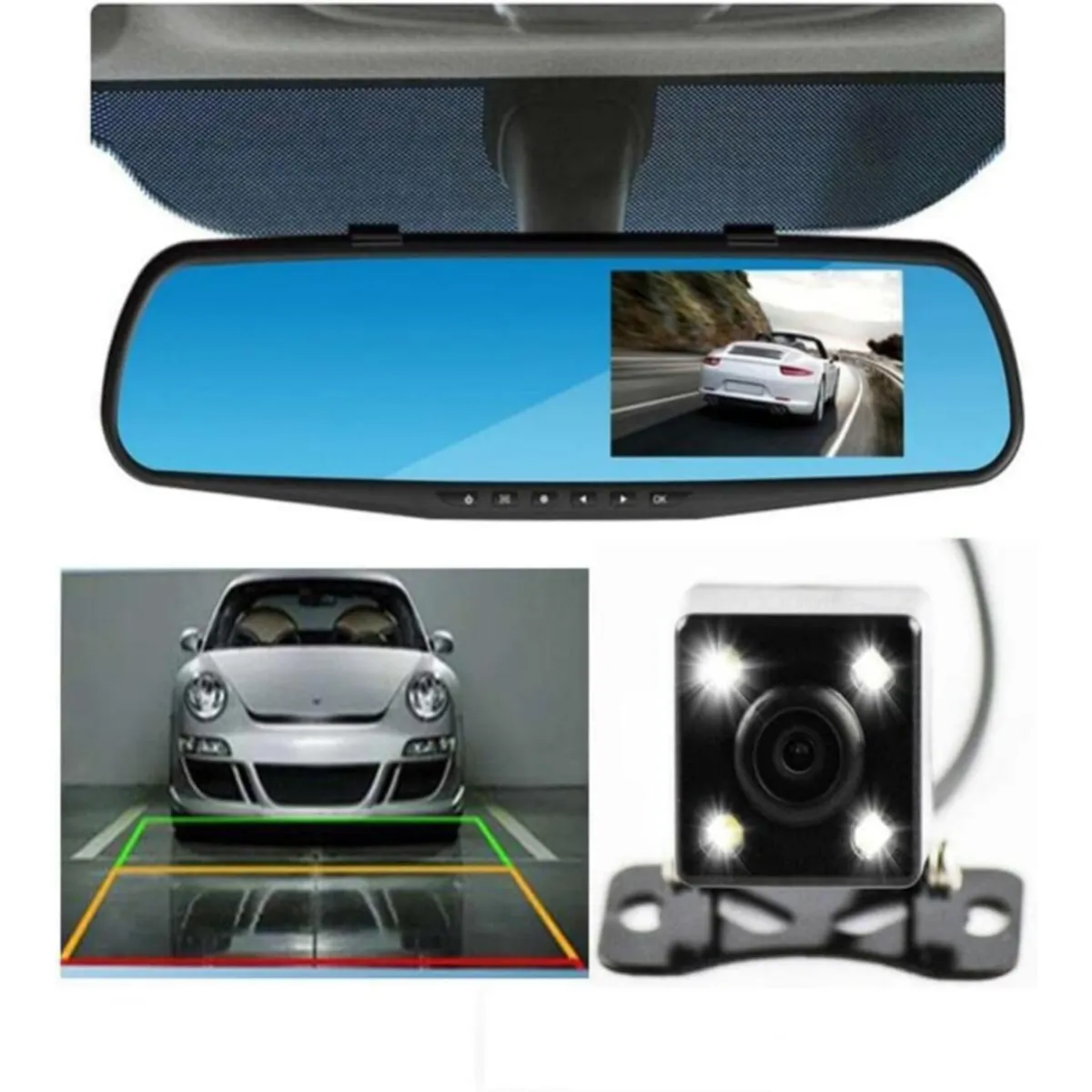این دوربین بهراحتی روی آینه اصلی خودرو نصب میشود و صفحه نمایش آن فقط در زمان نیاز فعال خواهد شد.